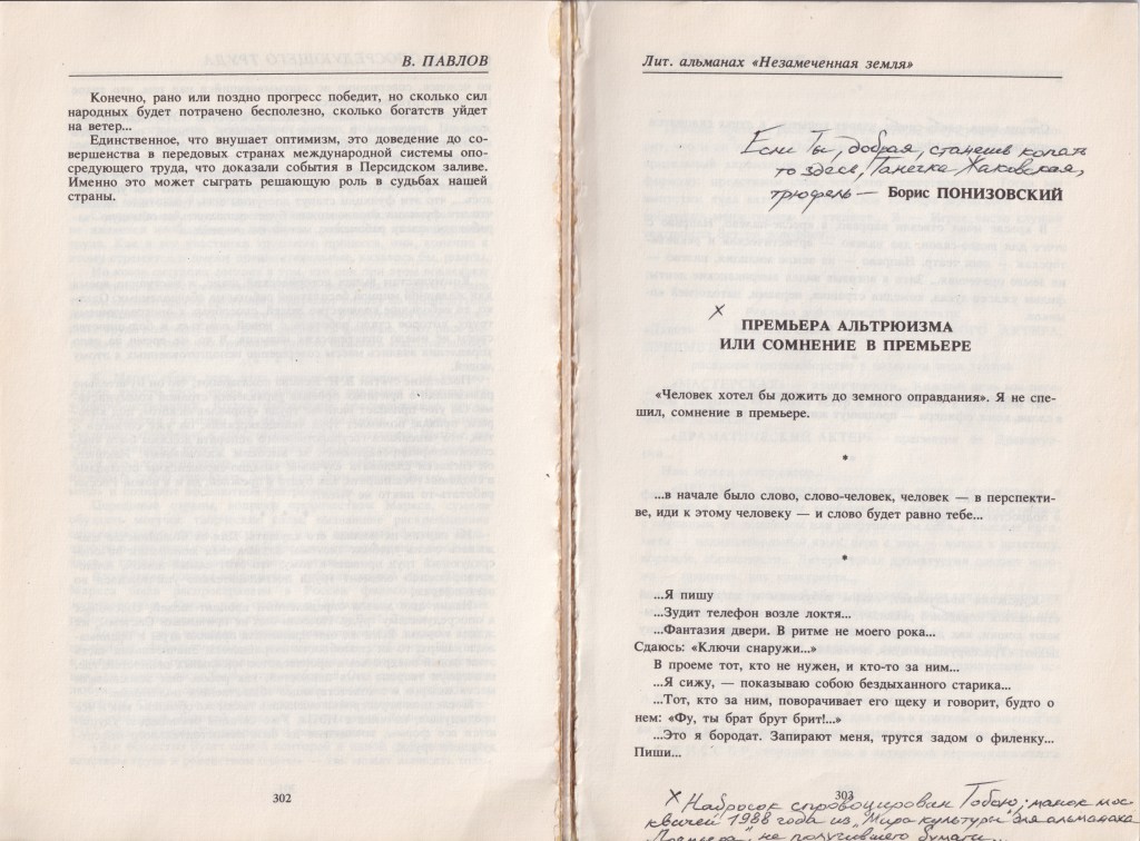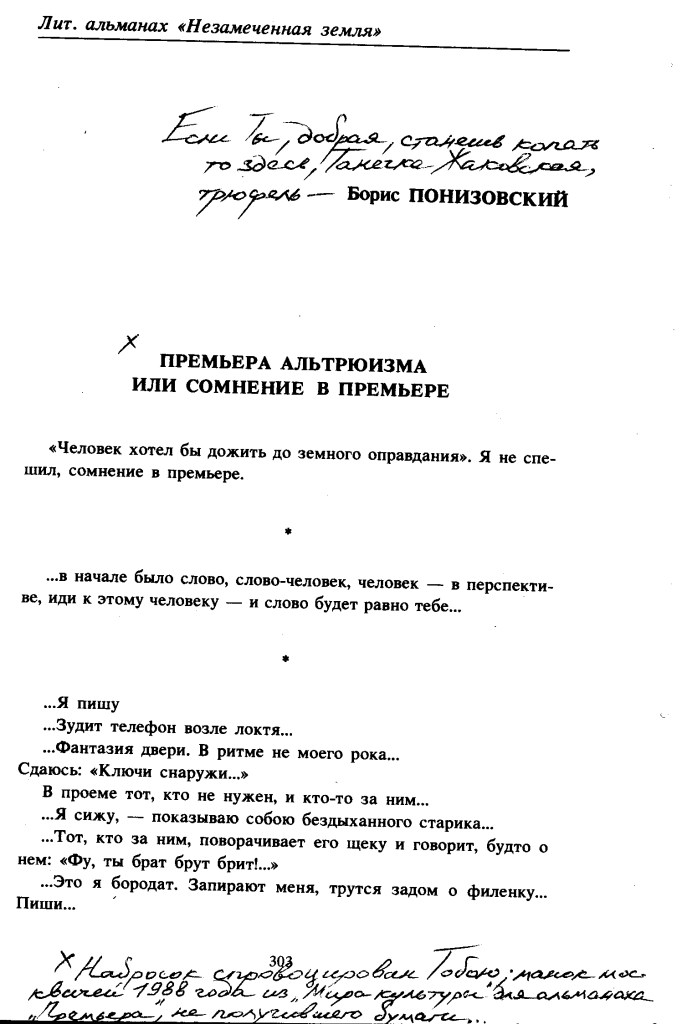 Возможно, я являюсь единственным обладателем экземпляра единственной прижизненной публикация Бориса Понизовского с его собственноручной авторской правкой.