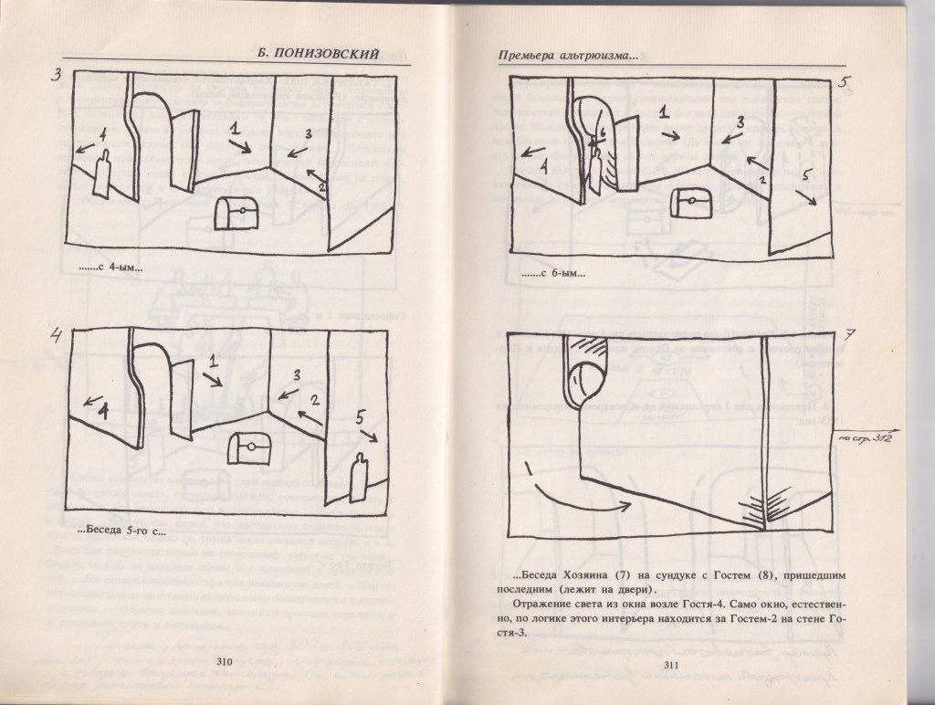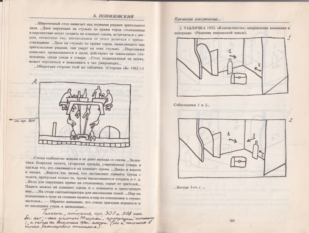 Танечка, поймешь, стр. 307 и 308 как бы нет,- они частный случай, прячущий остальное: «а теперь ты выпустишь туда актера» (но и частность в случае режиссерского мышления)…