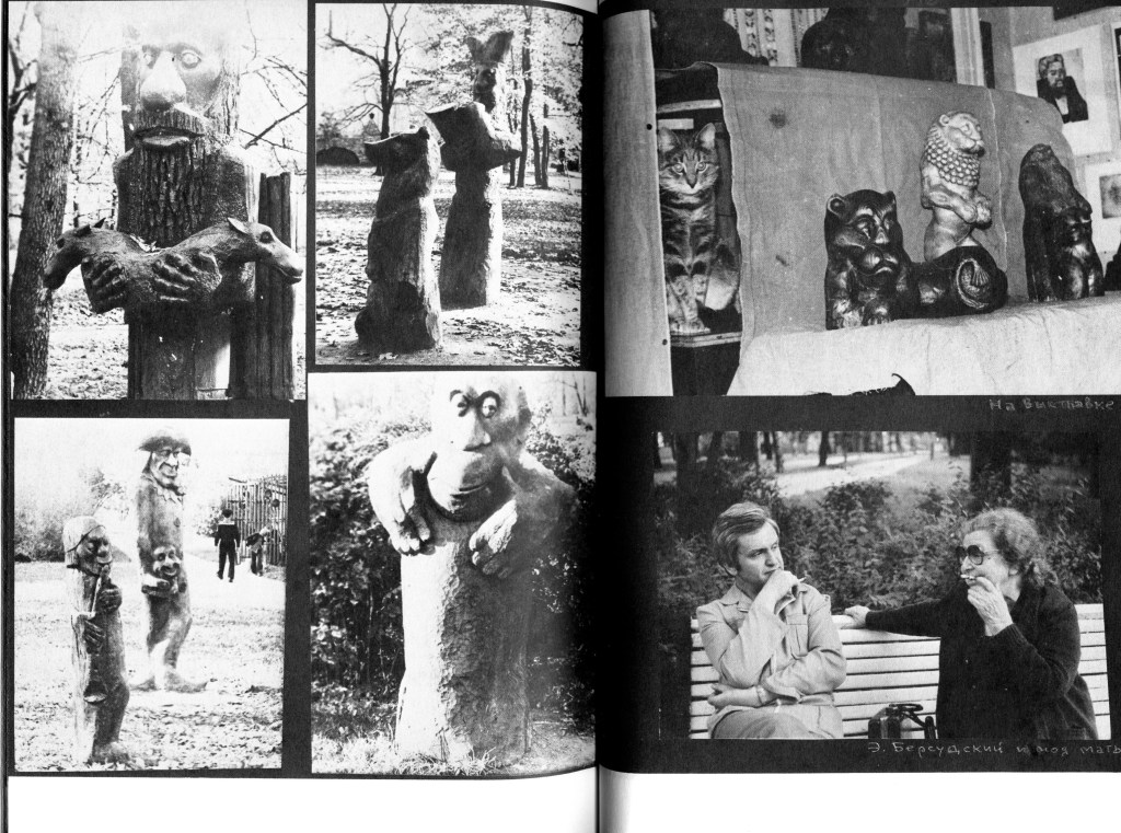 Все до единой фотки от матушки твои (и мои из каталогов, приходькинские) — вошли в том 2Б антологии, враз после 9 страниц Рохлина (твои 570-581, 19 фот работ твоих и Алиньки, 1 фото с матушкой и 1 моя голова бронзовая работы Гриши Израилевича — оригинал затерялся не то у Белкина, не то еще где, выяснить у матушки мне так и не удалось) и моя страничка о тебе под заглавием: «Жив Кулибин! / Ходики Хэдика Берсудского/». Письмо матушки, где она описывала их в подробностях — с этими клятыми переездами затерял.