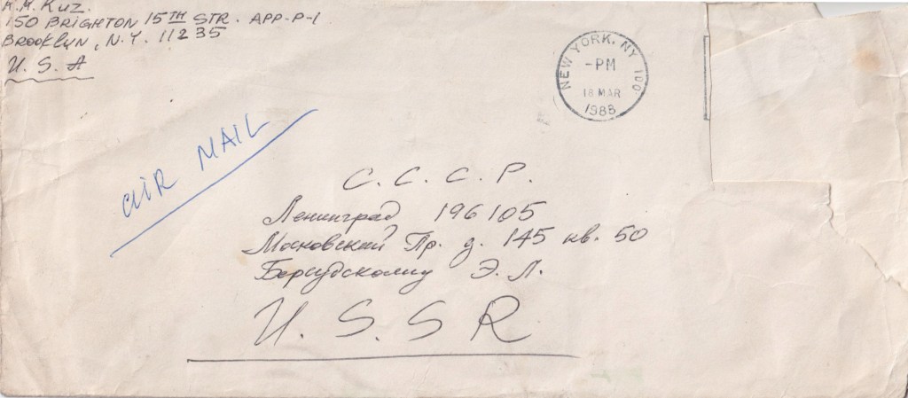 СССР, Ленинград 191187 п/о 187, аб/ ящ 574 Э. Шнейдерман)