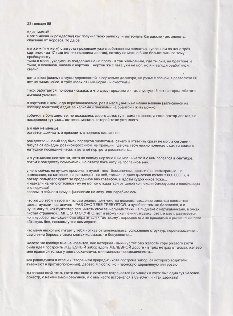 эдик, милый! и уж с месяц (к рождеству) как получил твою записку, и материалы багацькие — ан: хлопоты, спасение от морозов, то да сё…