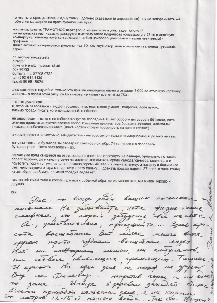 Два письма Константина Кузьминского Эдуарду Берсудскому (1988 и 1998)