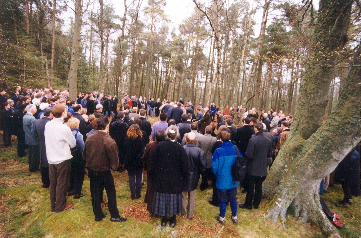 В лесу — в том самом, одном из последних в их районе, который он спас от порубки лет десять назад. На том самом месте, куда он привел нас семь лет назад — на следующий день после нашего приезда в Шотландию, а мы вдохнули запах, оглянулись вокруг и выдохнули в изумлении: «Комарово…» Те же елки и березы, мох и вереск, лисички в подлеске и моховики среди папортника… А в другую сторону — пологие холмы, поля, ручей в неглубокой лощине и если бы не змейка асфальта, не дать ни взять Псковщина. А если еще у кого какие сомнения — то пока стоишь на обочине леса у каменной ограды подойдут с той стороны доверчивые буренки и замычат на эсперанто.