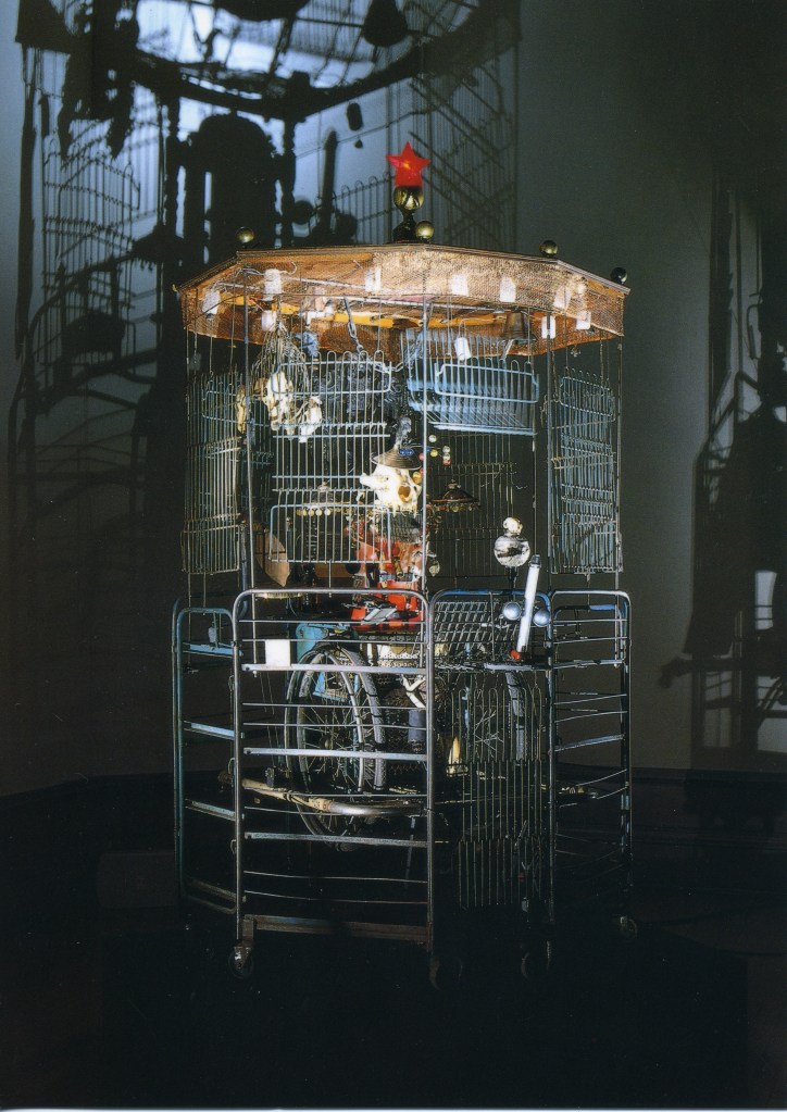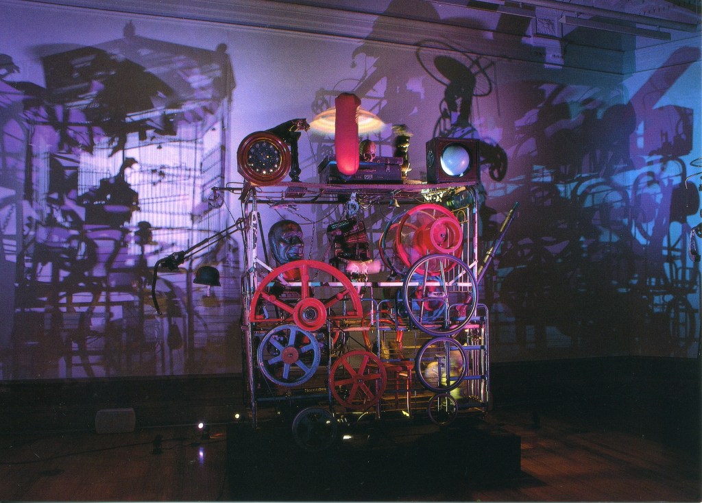 Мы познакомились с работами Тэнгли через несколько месяцев после открытия «Шарманки», на выставке его работ в Москве в 1990. Железный занавес только недавно приподнялся, и никакой другой движущейся скульптуры, кроме как на редких картинках мобилей Александра Колдера, Эд в жизни не видел. Он строил в то время кинематы из обломков петербургской дореволюционной мебели, с превеликим трудом добывая моторчики, способные заставить двигаться маленькие деревянные фигурки, и самым тяжелым объектом в его композициях были колесо от зингеровской машинки и чугунный горшок из-под щей. А тут по воздуху летали тонны металла, а по стенам метались огромные тени. Но главным ощущением было чувство невероятной свободы игры со всем чем угодно — во всё, что угодно.