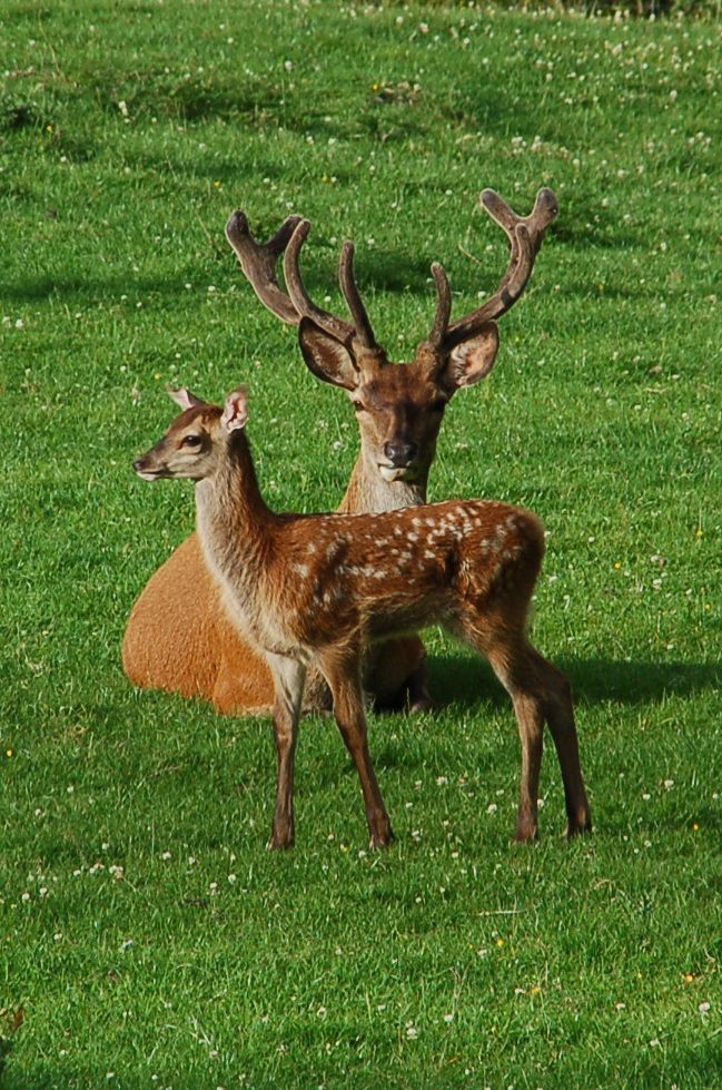Погода была вполне весенне-шотландская: то дождь, то солнце, так что олени были не в самой своей фотогеничной форме, но мы там столько раз бывали по делу — и столько гостей возили посмотреть, что у меня образовался приличный архив, часть из которого я покажу, пока рассказываю про хозяев фермы, наших друзей Джона и Никки Флетчер.