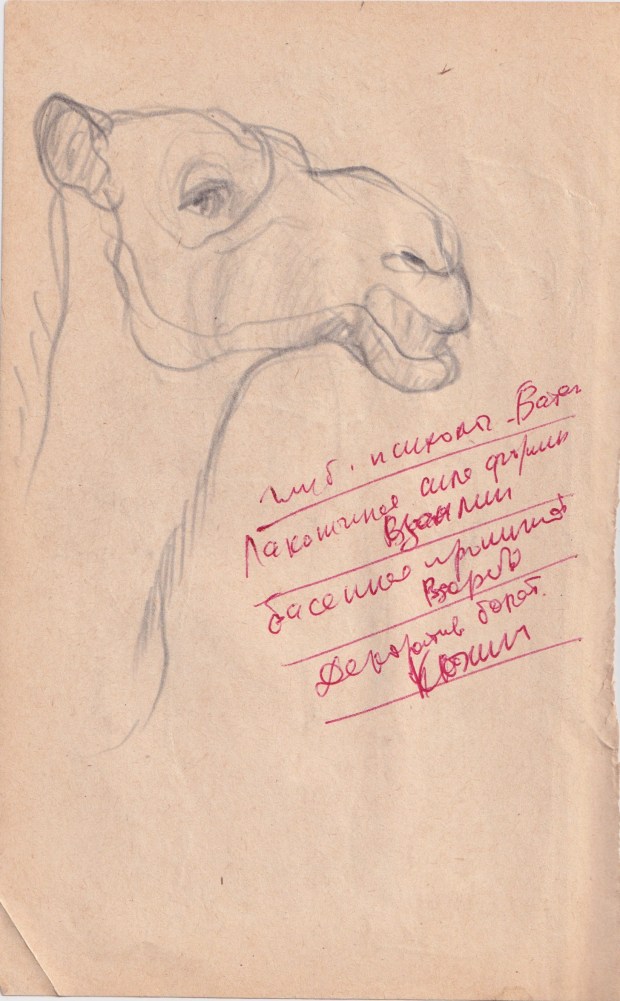 Часть рисунков в блокнотах Эда — это страницы из «Маугли» Ватагина. Там же есть несколько изображений волков, похожих на штудии Эдика. В другой ватагинской книге есть голова верблюда, прямо напоминающая ту, что у Эдика. Маугли с иллюстрациями Ватагина стала, по собственным словам отца, отправной точкой для его пути в искусство и в анималистику. Ватагин вскоре стал учителем отца, и Эдик, как я вижу, тоже многое почерпнул из того же источника.