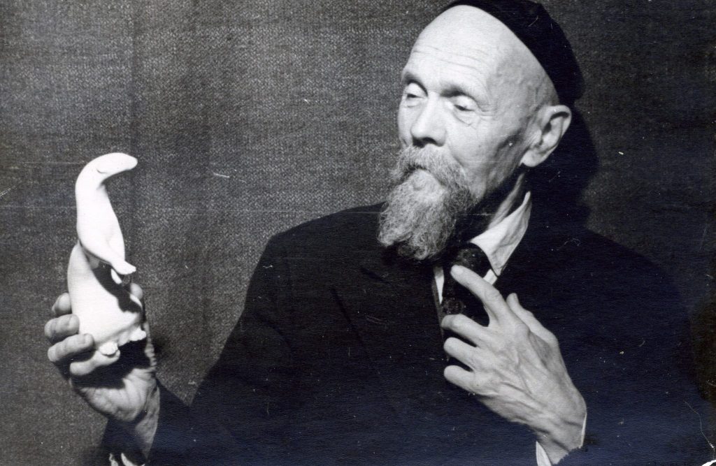 ЭБ (разглядывая коллекцию гипсовых слепков): Я вот так никогда не делаю – я беру бревно и начинаю рубить, а Борис Яковлевич был профессионалом – сначала сделает в гипсе, а потом такую из дерева почти точно.