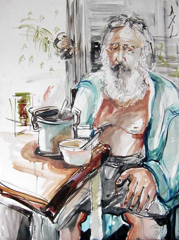 Этакий человек эпохи Возрождения. У него часто звучал Бах в чудесном исполнении, редком, медленном. Время вокруг Акселя как-то текло медленно, прозрачно: то он скрипку тронет, чтобы звучала аутентичней, то каутерием иконы коснется, то хлеба спечет, чтобы народы накормить, в морских раковинах краски размешает, ведь «времена меняются, а художник остается». Ему стоило только тихо присутствовать — и музыканты по другому играли, у них был какой-то удивительный подъем, дети доверяли ему свои тайны, птицы прилетали на окошко заглянуть, что же там происходит.