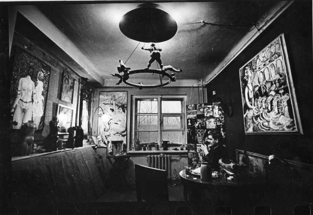Выручил всё тот же Гоголицын… Амбиции этого честолюбивого и энергичного человека распространялись не только на охрану деревянного зодчества — он видел себя художником и наследником русского Серебряного века. Возможно, Русские сезоны в Париже ему было бы не потянуть, но добыть мастерскую в 1974 году было немногим проще. Гоголицыну удалось добыть двухкомнатную квартиру в расселенном бараке на Артиллерийском переулке и он предложил Эду и Александру Коломенкову разделить с ним обретенное пространство.