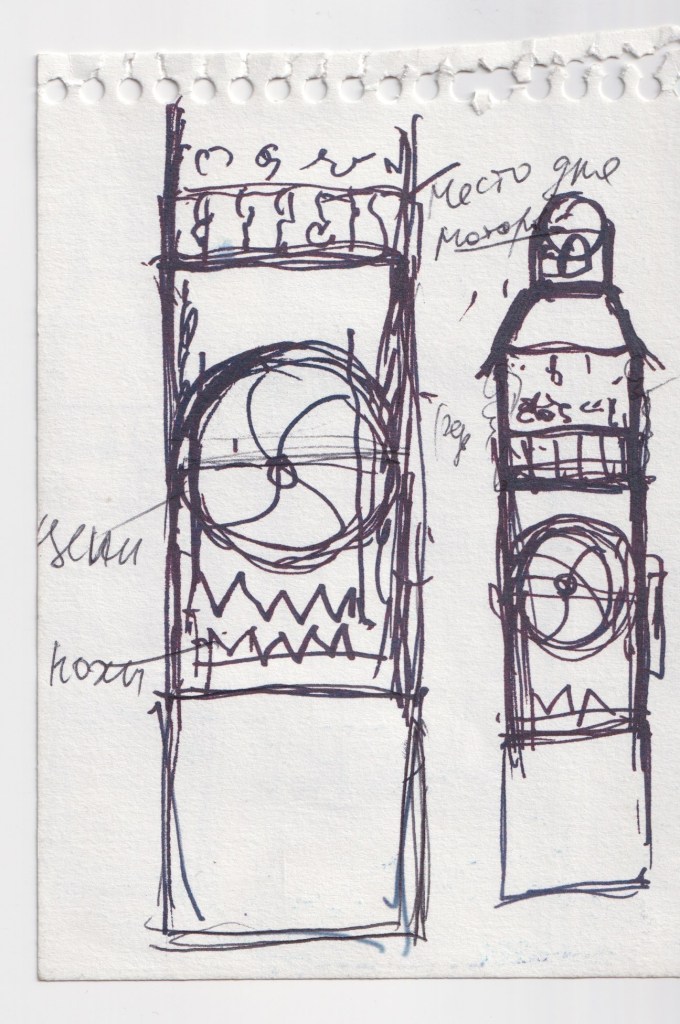 Только недавно, разбирая архив, я обнаружила, что Эд начал строить «Викторию» в своей голове, сидя на зимнем тель-авивском пляже. Грубые первые почеркушки в крохотном блокнотике — из тех, что он всегда носил в кармане, — потом на страницах дешевого альбомчика для рисования замысел обрастает деталями. Как и в случае с «Пизанской башней», эти рисунки появились только потому, что у Эда под рукой не было материала и инструментов, — обычно он сразу «думал» руками.