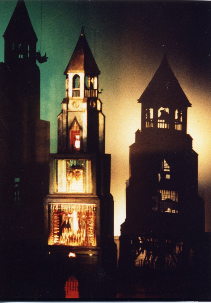 В большом зале я вела свет вручную (на серьезный пульт у нас не хватило денег) — и никак не могла привыкнуть к фантастической игре теней на стенах, возникавшей от легкого подъёма или опускания каждого из 24 движков на световом пульте.