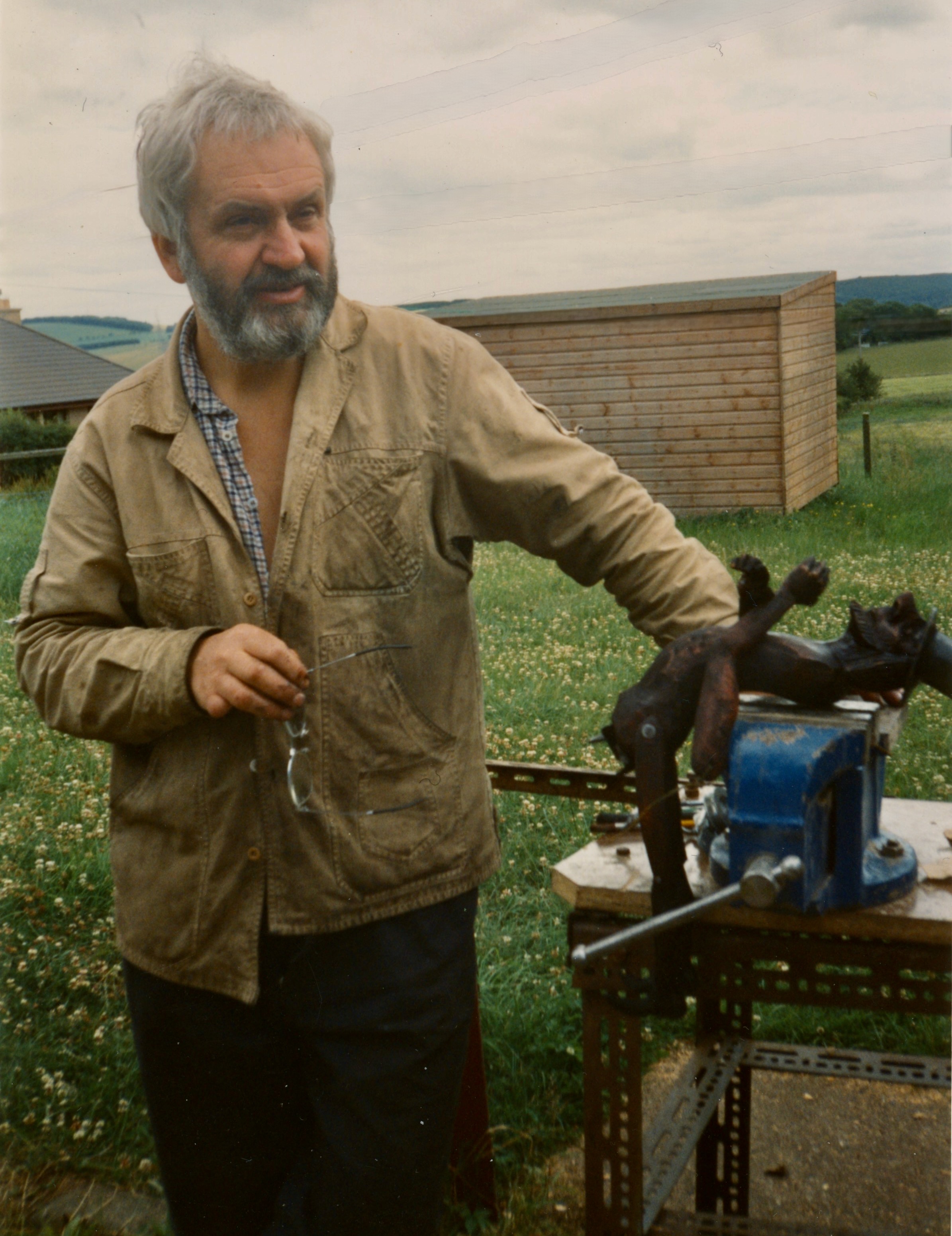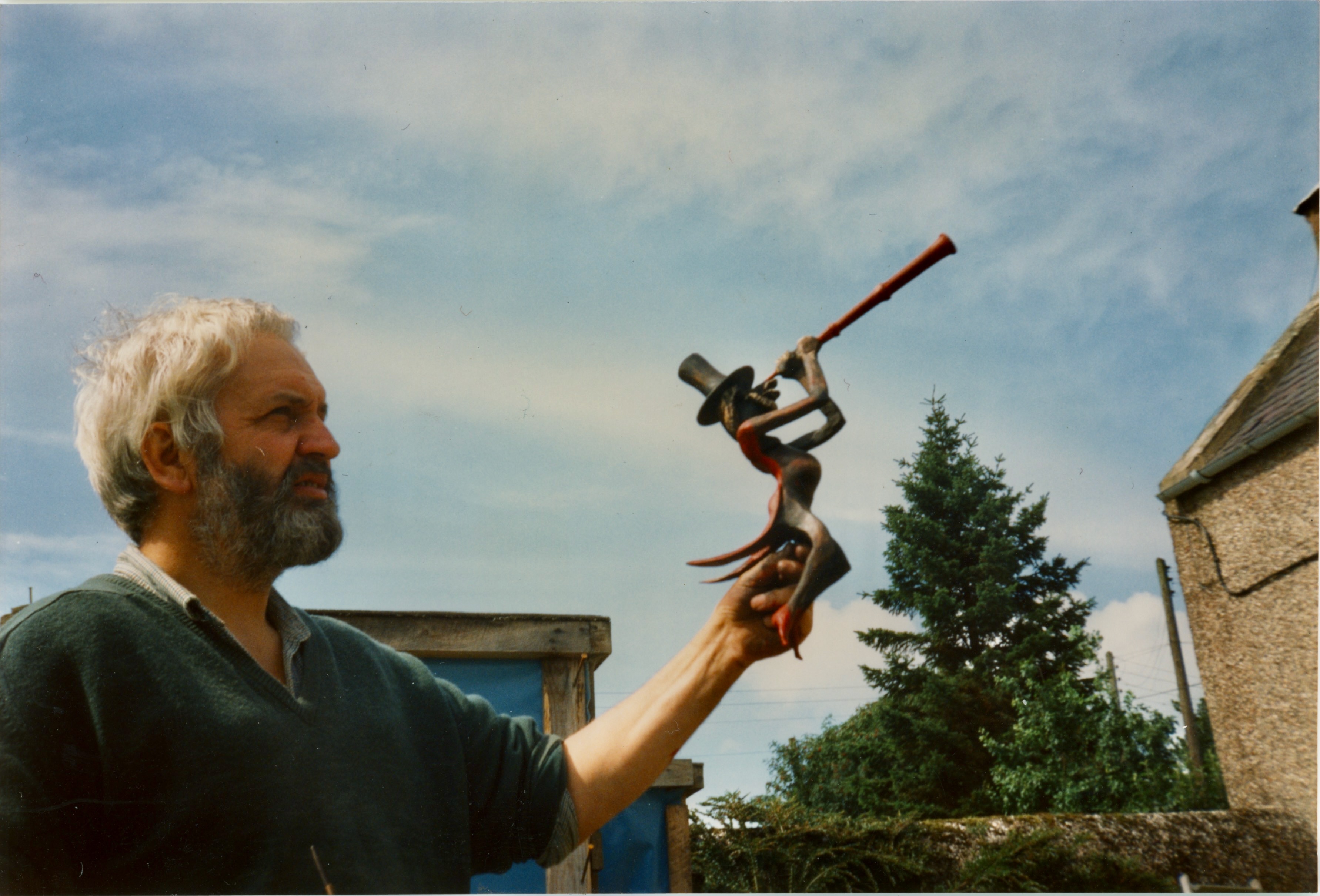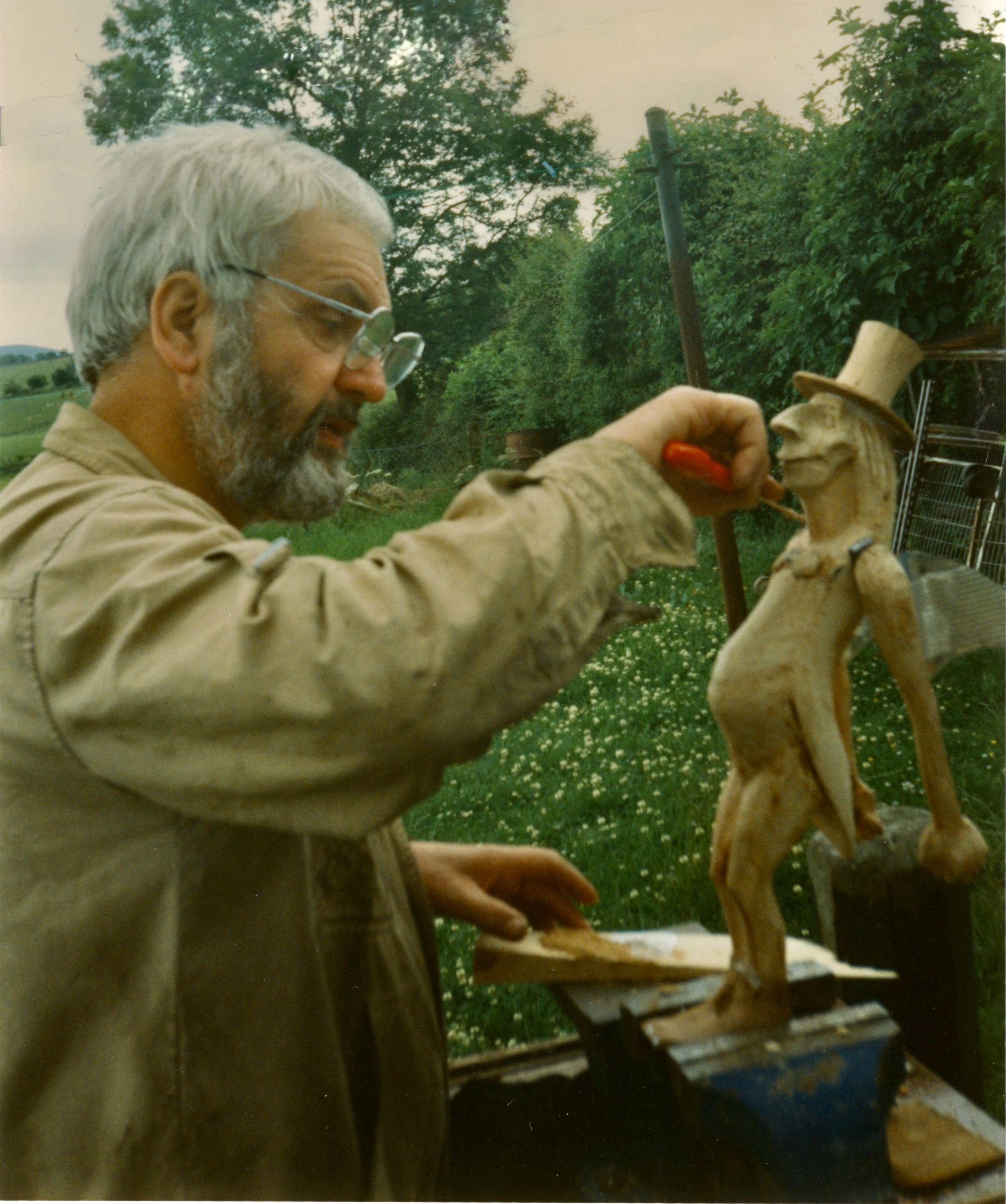 Лето стояло сухое и тёплое, и мастерская выплеснулась на полянку позади коттеджа. Дорвавшись до дерева и стамесок, Эд для разгона вырубил из старого пня улыбчивое создание, которое мы нарекли «Сёсикой», — в подарок Йетте Баккер.