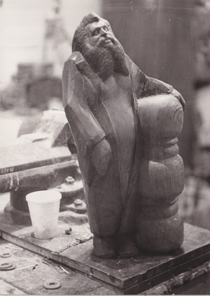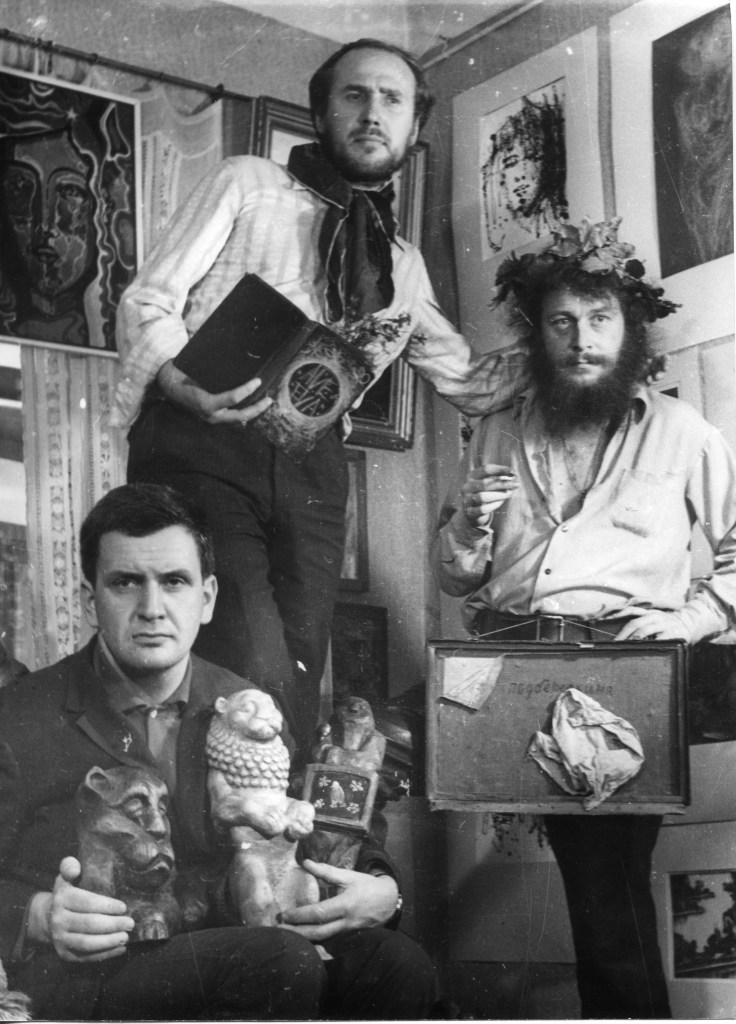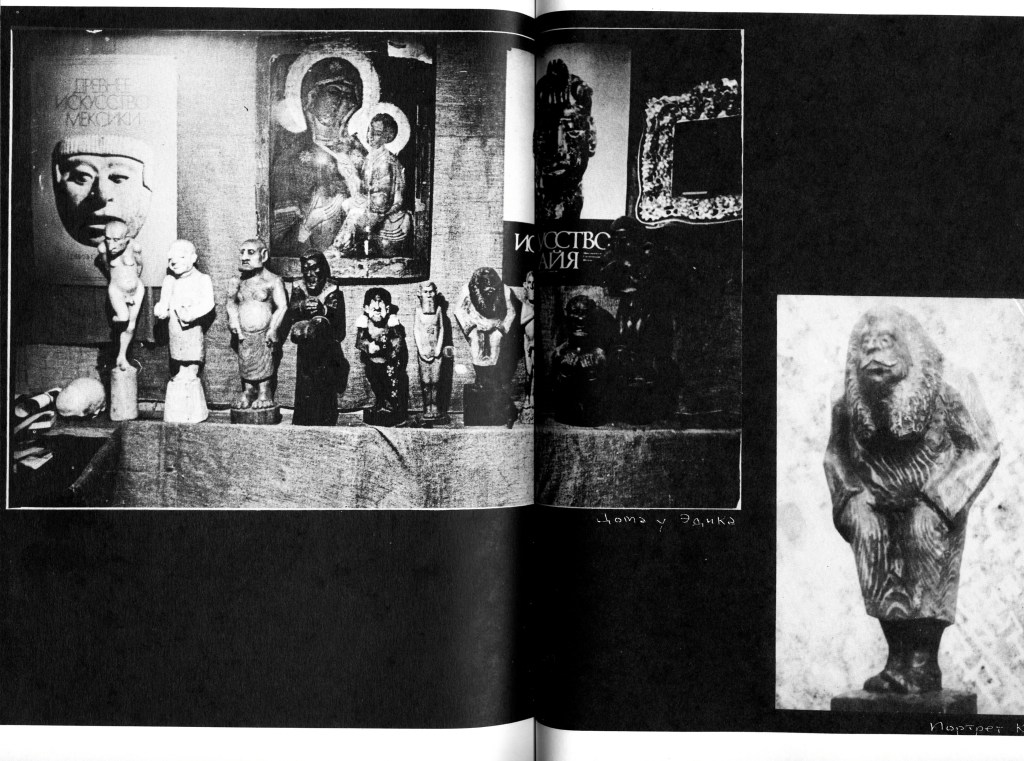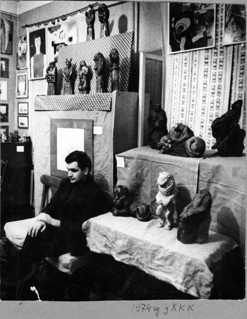 А в 74м году Кузьминский в большой комнате у себя на квартире устроил выставку разных левых художников. Потом почти все они уехали за границу — может быть, один-два остались. Там были одни живописцы, и только один я представлял деревянную скульптуру. Первый раз в жизни я там выставился. Раньше я нигде никогда не выставлялся. А там у него на квартире я выставился.