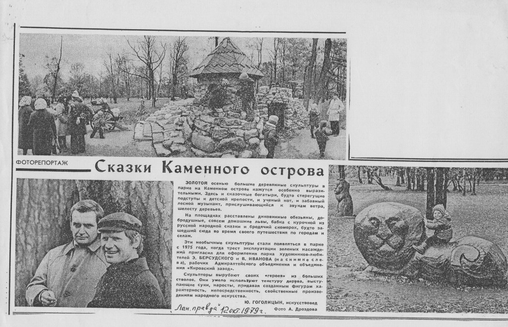 А дальше он уже работал сам. Платили там гроши — резчики числились «работниками паркового хозяйства» — но дипломов не спрашивали, была большая мастерская на Каменном острове, хорошая компания (одно время там даже подвизался Виктор Цой), неограниченное количество материала, свободное расписание — и постоянно действующая выставка в одном из красивейших мест Петербурга. Чего ещё желать?
