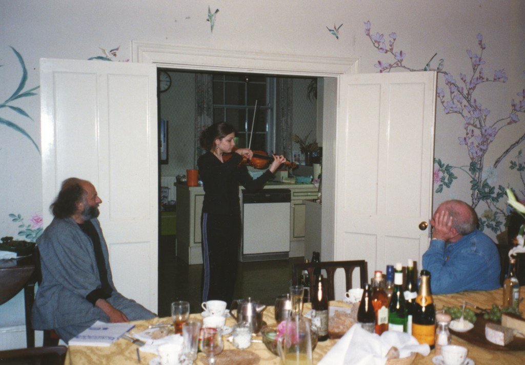 В мае 1999 я пригласила Анну на лондонский конерт Сергея Юрского, и она с удовольствием созласилась устроить в своём доме ужин в его честь. На него тут же напросился Слава Полунин, а с Юрским пришел его кузен Виктор Боровский, который когда-то преподавал у нас на курсе ( и произнес страстный монолог о том, что жизнь вне России невозможна, который через годы лёг в основу рассказа Юрского «Троллейбусная прогулка»). Ужин грозил перерасти в эмоциональное российское застолье, но Анна тактично переключила регистр, предложив гостям послушать игру своей протеже из России, молодой скрипачки. Перед живой музыкой в лондонском доме Виктор Евсеевич устоять не мог, так что кончилось всё в традиционных рамках британского салона.