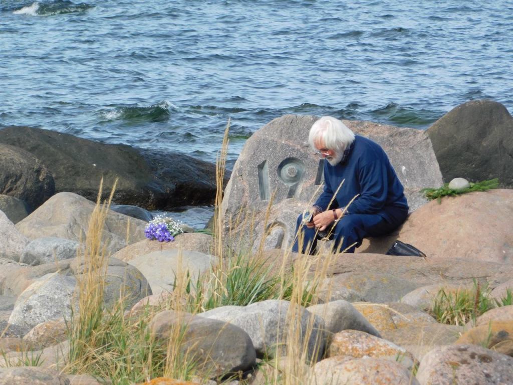 В 2017 году мы с Эдом съездили на Юминду (которая в советское время была закрытой военной зоной), он положил на прибрежные камни бело-голубой букет, и посидел рядом, как сидят в России на скамеечках у могил… О чем они там говорили за поминальной рюмкой водки – не знаю…