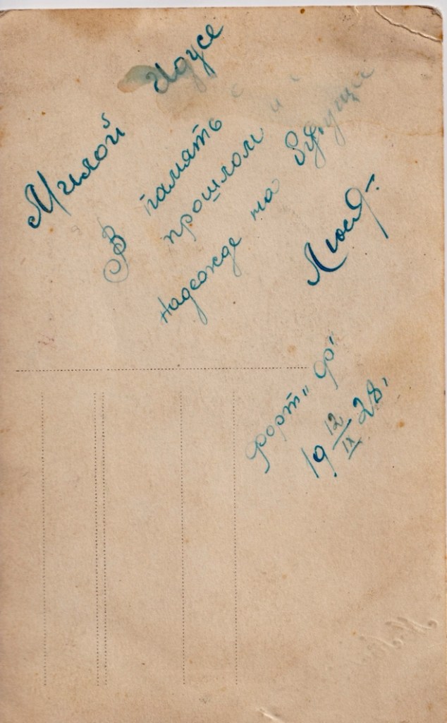 В сентябре 1928 он надписывает свою фотографию в парадной форме: «Милой Идусе в память о прошлом и надежде на будущее. Люся. Форт «Ф» 1928_09_12.»