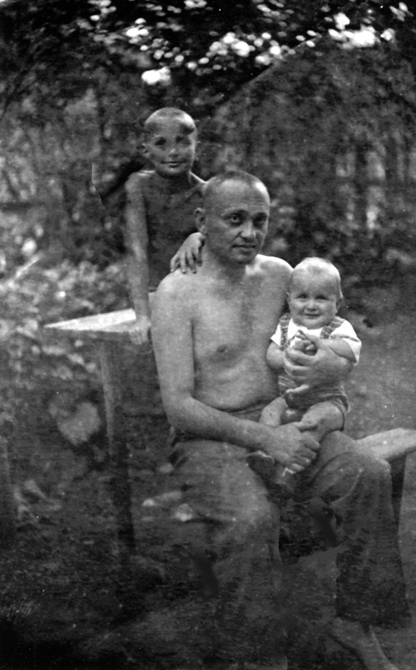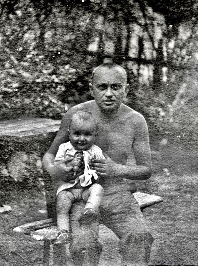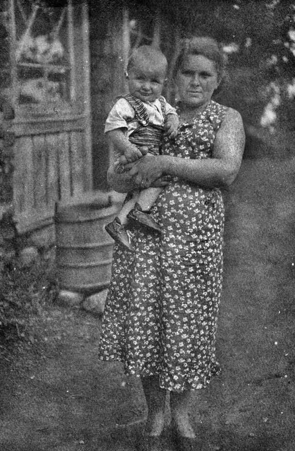 А это следующее лето 1940 года – и сыновей уже двое… Большеголового улыбчивого младенца, нареченного Эдуардом, принарядили для фотосессии в белую нарядную рубашонку и штанишки в полоску. Снимал, скорее всего, дядя Рафа – профессиональный фотограф.