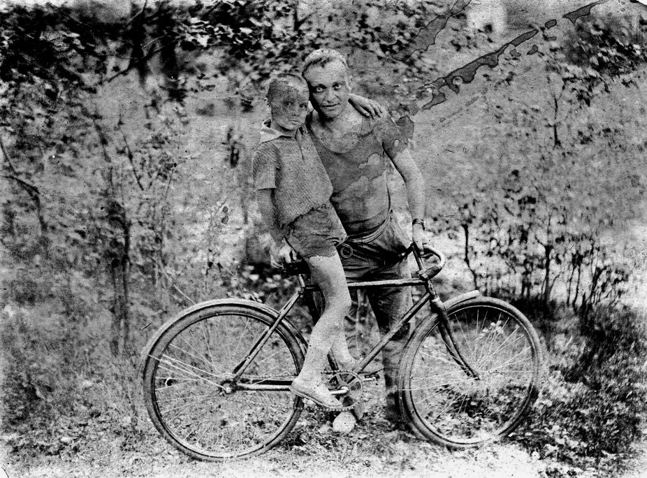 Вот на такой даче летом сделана выцветшая фотография — отец с сыном и его велосипедом (на обороте надпись – «После сдачи зачётов на право самостоятельной езды на велосипеде. Альберт Леонидович со своим учителем, 1/VIII/1939)»