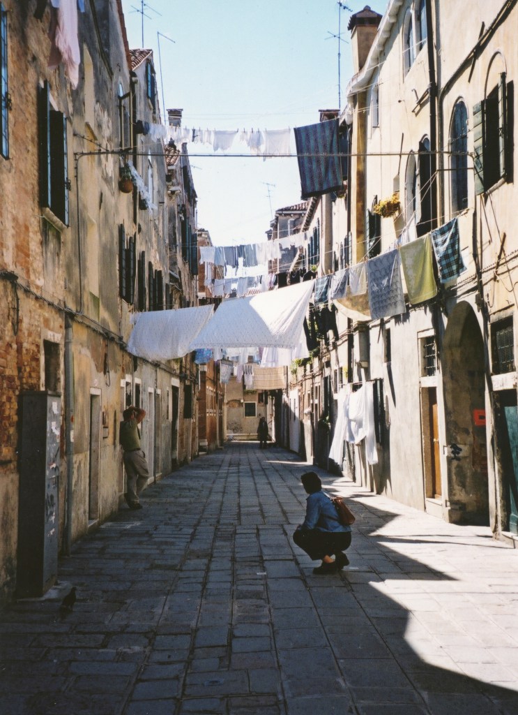 Денег, как обычно, не было, но мы наскребли на билеты на Ryan Air и на дешевый отельчик в Venice-Mestre, современной “материковой” части Венеции, куда туристский вал постепенно вытесняет население исторической части города. В общем-то ничего страшного – 10 минут электричкой до венецианского вокзала Санта-Лючия, но вечером поезда редки, и последний отправляется в одиннадцать вечера. . (Больше мы эту ошибку не повторяли – и другим не советуем: самое интересное в Венеции это рассветы и ночные прогулки)