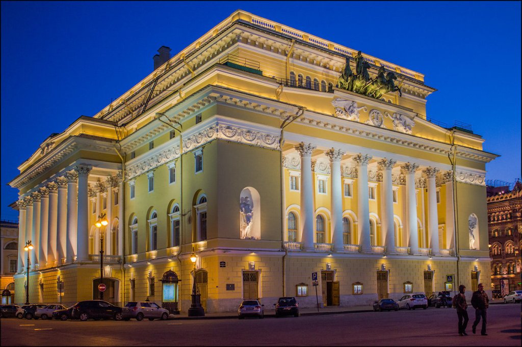 Сначала его ошеломил Александринский театр (в ту пору – Академический театр драмы имени Пушкина). Творение зодчего Росси – сияющий солнечно-белый куб, разбитый в идеальном ритме колоннами и увенчанный бронзовой квадригой Аполлона, в котором всё – от храма и ничего от балагана, — изнутри оказался не менее величественен, чем снаружи.