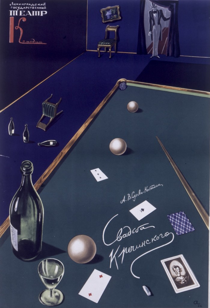 Театр Акимова и театр Берсудского принадлежат к редкому типу художественного сознания, в котором мир видится не пространством действия, а механизмом, порождающим смысл. Акимов строил сцену как интеллектуальную игрушку, где каждая линия, предмет и фигура подчинены не бытовой правдоподобности, а логике конструктора. В его афишах и эскизах предметы ведут себя как персонажи, а персонажи — как функции, каждая деталь не иллюстрирует историю, а вскрывает её устройство. Акимов не изображал мир — он демонстрировал его структуру, «распаковывая» идею через образ, масштаб, цвет, иронию.
