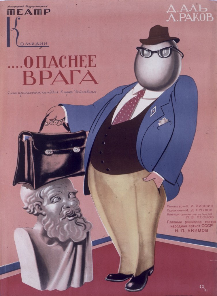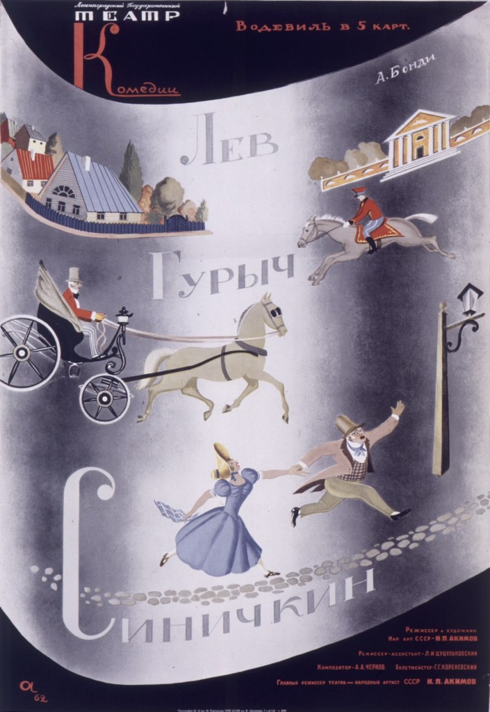 НИНА АЛОВЕРТ: Театр Комедии, которым Акимов руководил с 1935 года, был не только наиболее оригинальным и самобытным, но, может быть, единственным «диссидентским» театром сталинской эпохи. Неслучайно в 1949 году Акимова изгнали оттуда, обвинив в космополитизме и формализме, и вернули только в самом начале «оттепели» 1956 года. Неслучайно и то, что и в дальнейшем, чем талантливее и увлекательнее были его спектакли, тем больше вызывали они раздражение советских руководителей искусством.