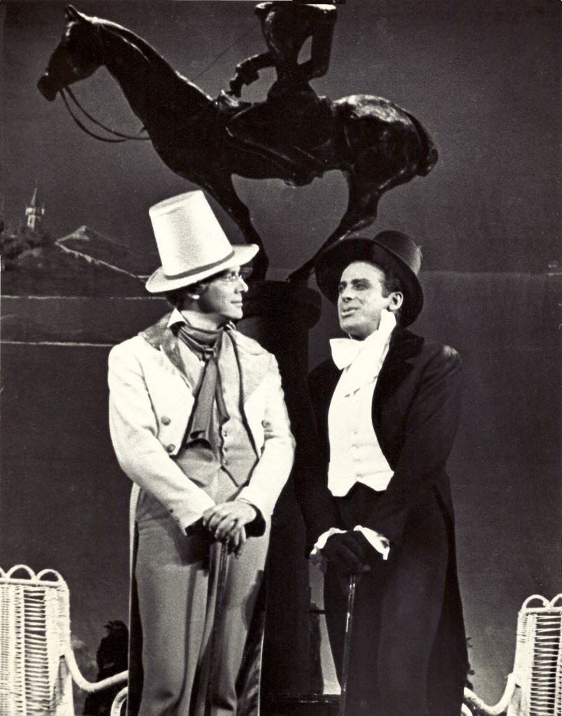 Из всех акимовских спектаклей – а он посмотрел там практически весь репертуар, наибольшее впечатление на Эда произвела «Тень» — его поразила декорация (особенно фигуры, поддерживающие балконы) и игра Льва Милиндера в роли Тени. Я тоже хорошо помню этот спектакль – но Нина не только помнит, она его фотографировала, сидя в зале рядом с Николаем Павловичем.