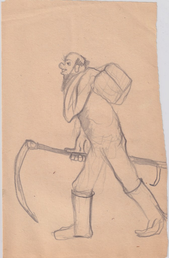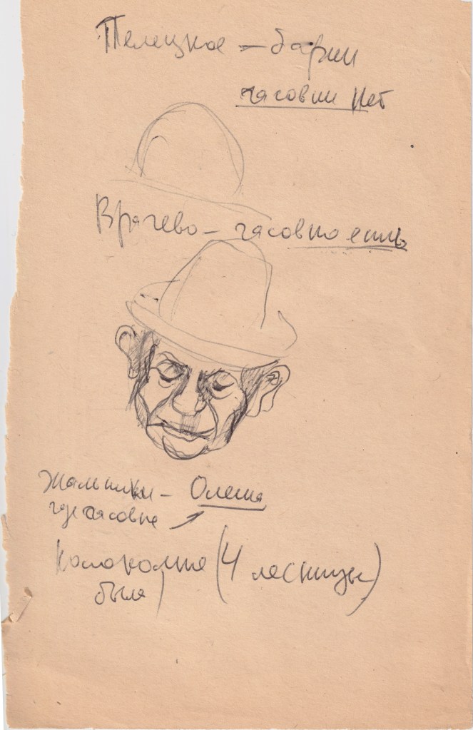 Наверно, это они с кем-то местным обсуждают план похода — возможно, с тем человеком, чьё лицо набросано на листе. (Жальник — название древних языческих могильников курганного типа. В другом значении — старинное кладбище, погост. )