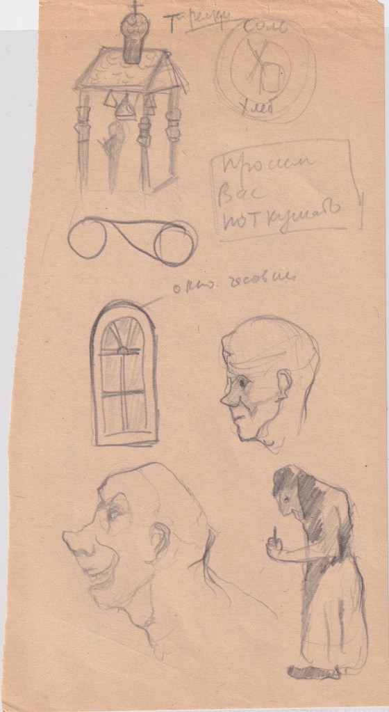 Интересная деталь — звонница в левом верхнем углу первого рисунка появится почти точно в таком виде через несколько лет у него в кинемате «Ход жизни» — как верхняя часть.
