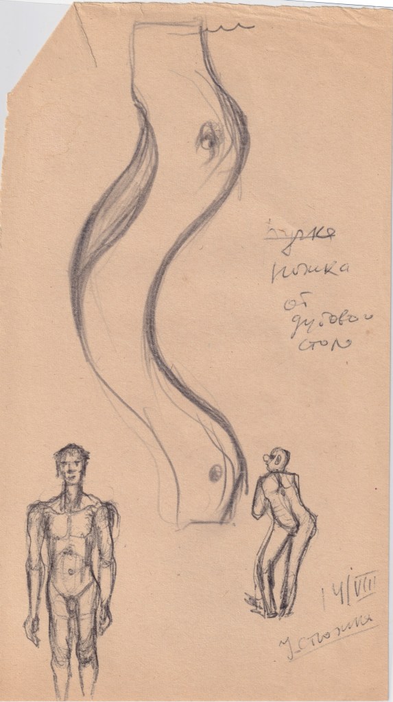 Уже в этих ранних листах проявляется то, что позже станет основой кинематов Берсудского: внимание к циклическому движению, к телу как механизму, к действию как первичной структуре формы. Эти рисунки не «ведут» к кинематам напрямую, но показывают, откуда возникает навык видеть движение как архитектуру.