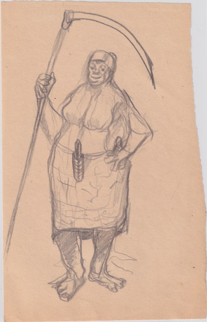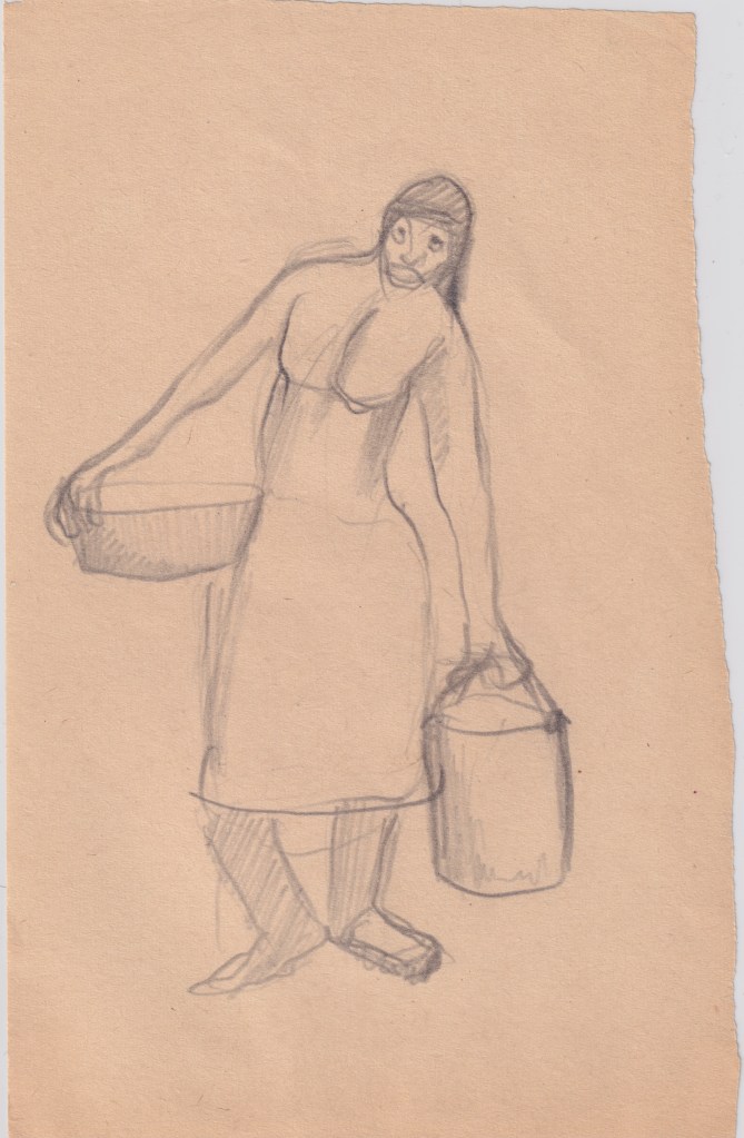 Деревенские жители на сенокосе и стирающие бельё в реке — не жанровые сцены, и не экзотика «другого» мира, а наблюдения скульптора за механикой тела.