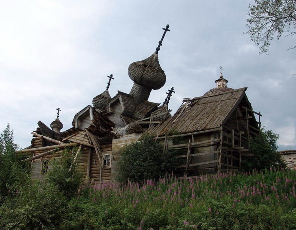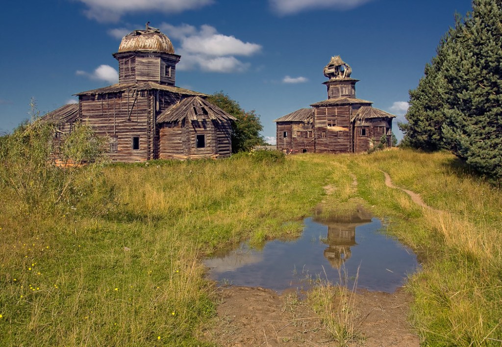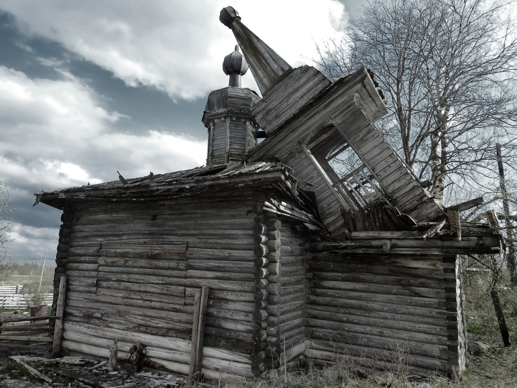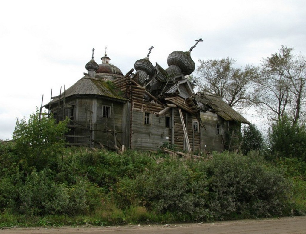 Десять лет назад, во время работы над фильмом «Происхождение Шарманки», кто-то из друзей прислал мне подборку фотографий, сделанных уже в 2000 годы. На них видно, до какого состояния были доведены деревянные церкви в результате многолетней борьбы с религией и набиравшего обороты процесса умирания деревни.