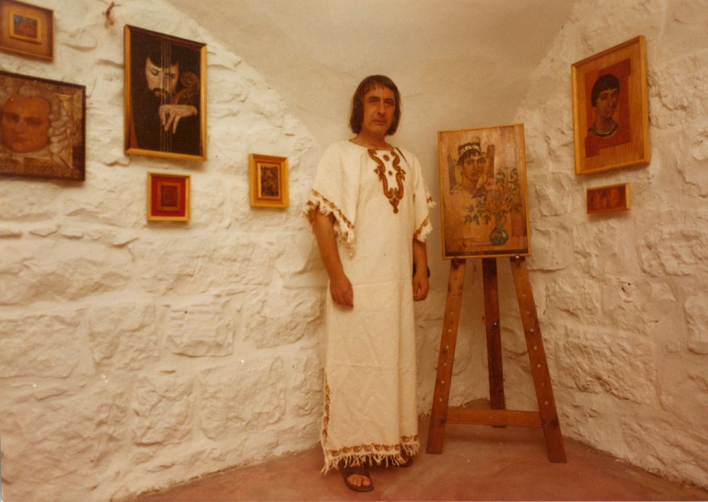 Я догнал друзей и мы, пройдя налево по проспекту, вошли в мрачноватый подъезд одного из домов по правой стороне, оказавшийся проходным и очутились во дворе, откуда новое парадное привело нас на шестой этаж, где мы остановились перед дверью, покрытой рваной ватной обивкой. Около кнопки звонка виднелись «пацифики» и ещё какие-то знаки, нацарапанные цветным карандашом. Дверь нам открыл человек более чем колоритный, — во всяком случае, по советским меркам семидесятых годов. По виду — лет около пятидесяти, длинные, почти до плеч волосы, видавший виды махровый халат. На фоне чёрного прямоугольника дверного проёма вырисовывался острый, как у майринковского персонажа профиль бритого лица. «Ну, входите, раздевайтесь»,- вкрадчивым глуховатым голосом изрёк человек, а сам удалился куда-то в недра по-видимому, весьма обширной квартиры. Последовав за ним, мы миновали по правую руку несколько тёмных комнат, и оказались на ярко освещённой кухне с потолком, расписанным золотыми звёздами по тёмно — синему фону. Эта была не единственная деталь помещения, роднившая его с алхимической лабораторией: справа от плиты, в шкафу, теснились штанглассы с разноцветными солями, а на самой плите, для кастрюль и сковородок оставалось мало места от странного вида приспособлений для плавки, щипцов и тиглей. Над плитой, на полке для посуды, классически красовались колбы для перегонки и прочие стеклянные фаустовские атрибуты. В воздухе витал запах каких-то смол, следы которых виднелись и в некоторых колбах. «Ничего себе, попал»,- подумалось мне. «Чаю, гм, дадут?»,- раздался всё тот же вкрадчивый магический голос. Из обосновавшегося на кухне явно богемного общества, отделилась какая-то фигура, и появились новые чашки. Меня пригласили сесть за стол в старинное плюшевое кресло. Сам хозяин присел рядом и, закурив «Беломор» спросил: «Кто вы, у вас хорошее поле, вы христианин?». Сейчас, когда разговоры о «полях», «энергетике» и тому подобных материях, даже раздражения уже не вызывают своей банальностью, я бы и не обратил внимания на такое обращение. Но тогда, в 70-е все обстояло совсем по-другому. Мы, юные мистики- неформалы состояли в одном из первых эшелонов общего подспудного движении умов к сверхъестественному и живо реагировали на малейшее упоминание о чем либо, касающемся парапсихологии или оккультизма.